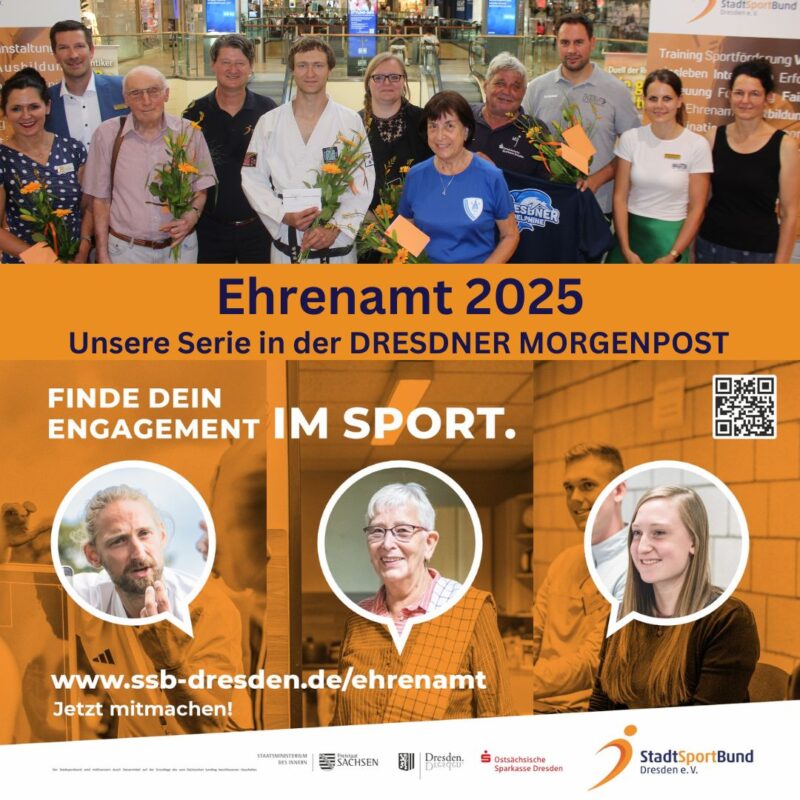 Um euer Engagement zu würdigen und in die Öffentlichkeit zu bringen, gibt es ab Freitag, 24.10.2025 in der Dresdner Morgenpost – unserem Medienpartner – eine Ehrenamts-Serie. Wöchentlich wird ein Ehrenamtler und sein Verein vorgestellt.